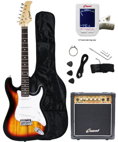 If you have been looking for top recommended best electric guitars reviews, this Crescent Electric Guitar Starter Kit – Sunburst Color (Includes Amp & CrescentTM Digital E-Tuner) is the best cheapest price on the web we have searched. Many good reviews already proving the quality of this product. The Crescent Electric Guitar Starter Kit – Sunburst Color (Includes Amp & CrescentTM Digital E-Tuner) is equipped with a large number of features that makes it great product. The most sold product is not expensive and it is highly desirable, and if you want this Crescent Electric Guitar Starter Kit – Sunburst Color (Includes Amp & CrescentTM Digital E-Tuner), you should not miss this opportunity because this product is the price length applications.