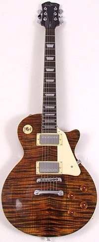 Genuine flame maple top, single cutaway, solid mahogany, arch top body.